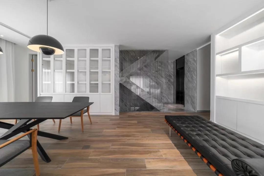 “北美橡木”系列的运用,让整体空间于现代风格的简单直白中透露着细腻与质感。黑白灰与木色的融合,既有时间沉淀的稳重,也有自然朴素的轻盈,展现出空间的美感与平衡,私享一种安静轻松的生活方式。