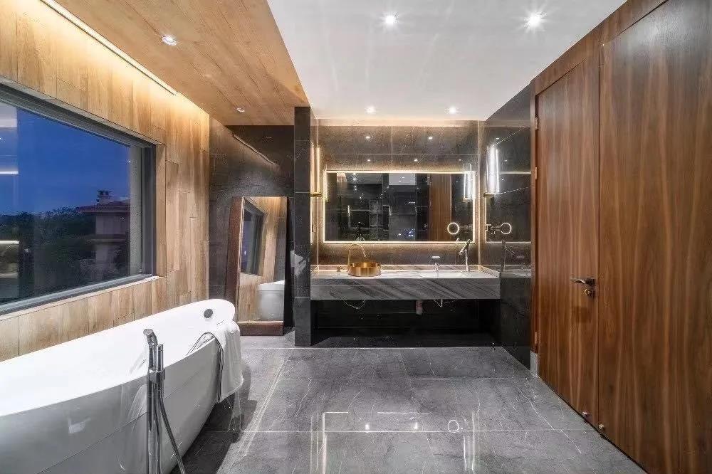 主卫中的“北美橡木”系列与“蒙特里安”系列相搭配,彰显独特的个性和尽善尽美的舒适。中性的色调给人一种放松的状态,缓解压力的同时代表优雅,木纹和石纹很好的混合在一起,构成视觉上的一个完整的美感。