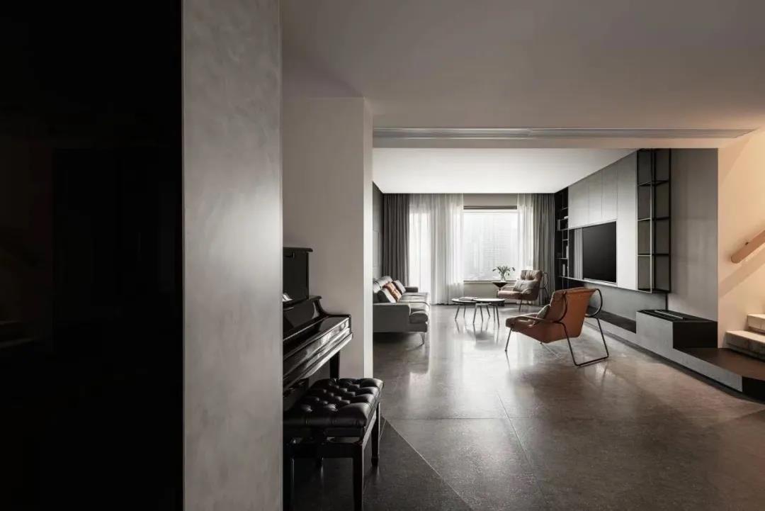 是啊,理性细密的工作内容、空中飞人的状态并不能完全取代家庭生活的温暖和脚踏实地的安全感,不能与家人相处的遗憾时不时涌上心头。 其实看似独行侠的Luke,也时刻记挂着他的家人。Luke飞行期间,他的妻子Miya甘愿做起这个家的守护者,精细地操持着这个家的一点一滴,让这个家免于成为孤零零的模样。 那么,拥有情感羁绊的Luke家是什么样子呢? / Luke的家 Luke的家位于成都麓湖五彩林堤,是一套220㎡的跃层住宅。设计师运用化繁为简的设计手法,一改较为混乱的原空间布局,打破空间的局限,注入更多美学与温度。 在空间功能划分和尺度把握上,生活的需求自然成为重要的设计考量之一。