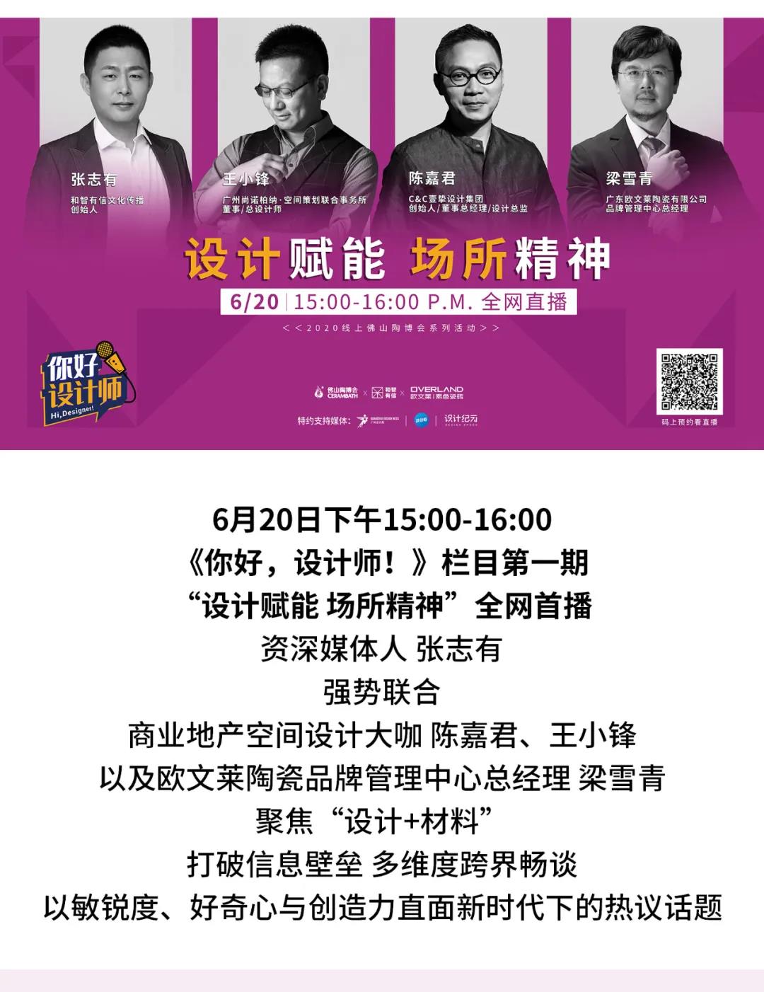 作家创作故事用的是文字语言, 空间设计师表达故事则用的是设计语言, 造型、构成、材质、色彩、比例等等 这些都是设计师最为熟悉的设计语言。 材质语言常常是设计传达的关键, 材质与设计的关系首先是材质与人的关系, 所以材质与设计师本就是相互成就的过程。 在接触材质的这个过程中, 绝大部分设计师都有长期“碰瓷”经历, 因为瓷砖在很多空间功能装饰构成中占有重要比例。 高品质感的瓷砖会让整体空间因为细节而生动。 来到2020年, “设计+材料”有哪些新玩法? 6月20日下午3点全网直播为您解答 ↓↓↓↓↓↓ 6月20日下午3点全网直播!