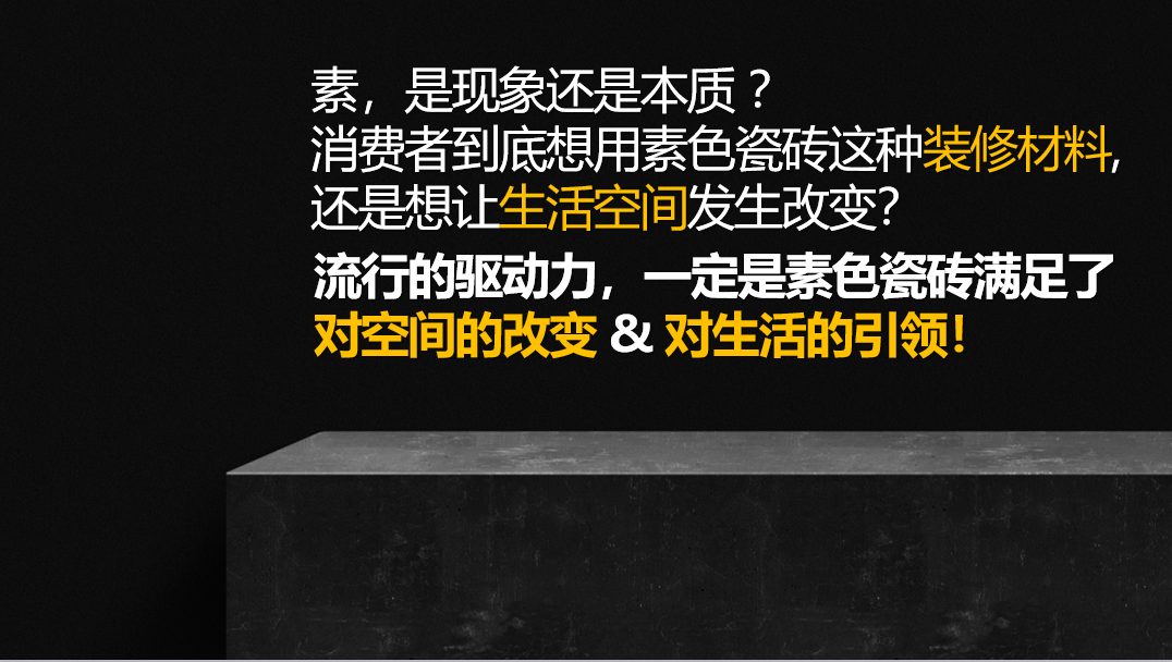所以,真正的品牌能力不是拼谁说话的声音大,而是能把话说到别人的心里去,素色瓷砖品牌必须要展现这种内涵。