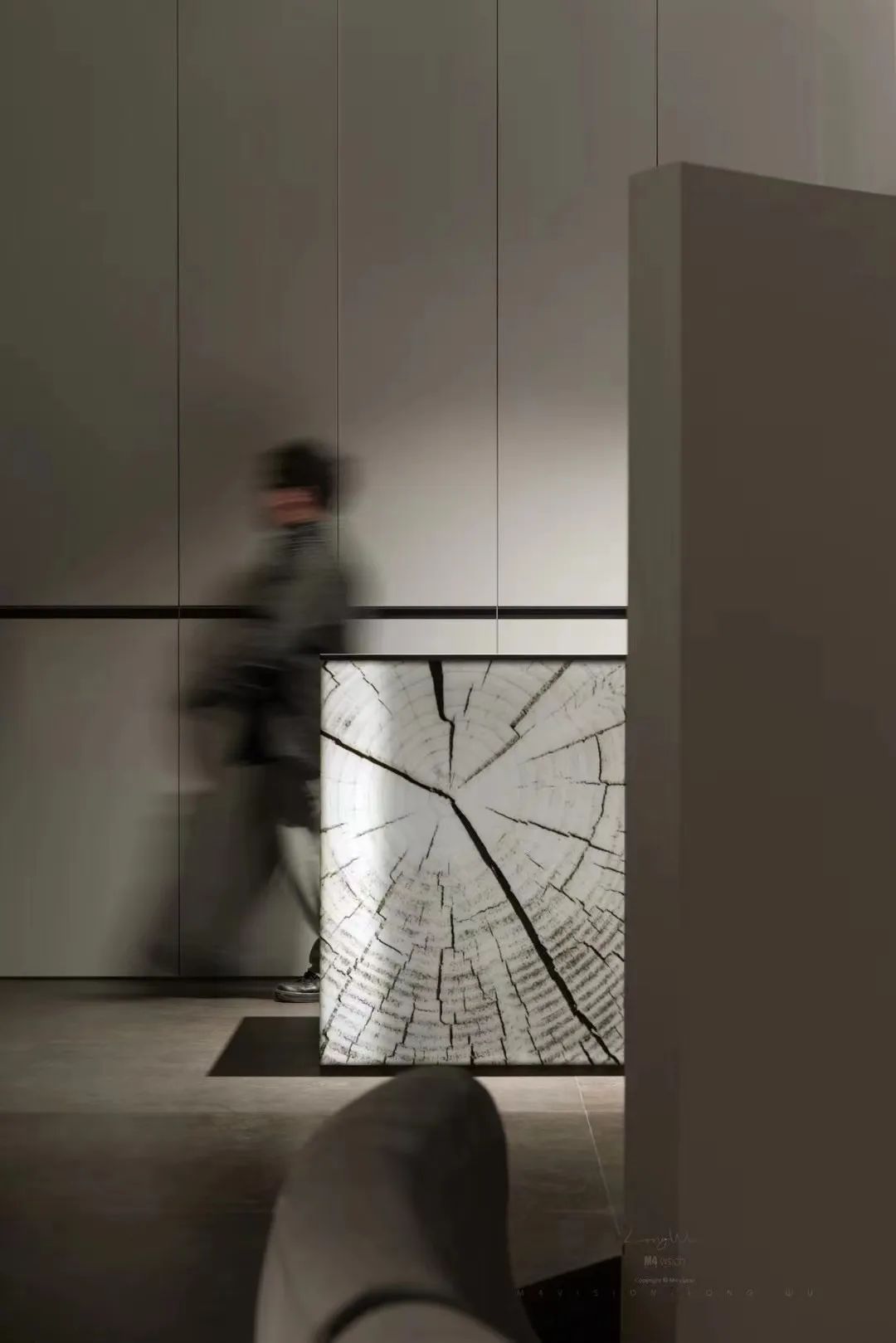 每个独立而又贯通的空间,皆在诉说欧文莱用光影艺术呈现的素色美学;构建整个门店的不同尺寸、色彩、肌纹的“灰”,表达欧文莱对空间材质刀锋竞争力的探究。如选材区中,以宽大长方体形式呈现的第七代符号产品[时光盒子],运用了中国诗意笔触来表述材质美学,回归触手可及的用户生活场景,将对产品细节的极致要求进行了呈现。寥寥数语,道不尽个中细节;摄影记录,也不过是从时间中截取了一个空间表情。欢迎前往打卡品鉴!