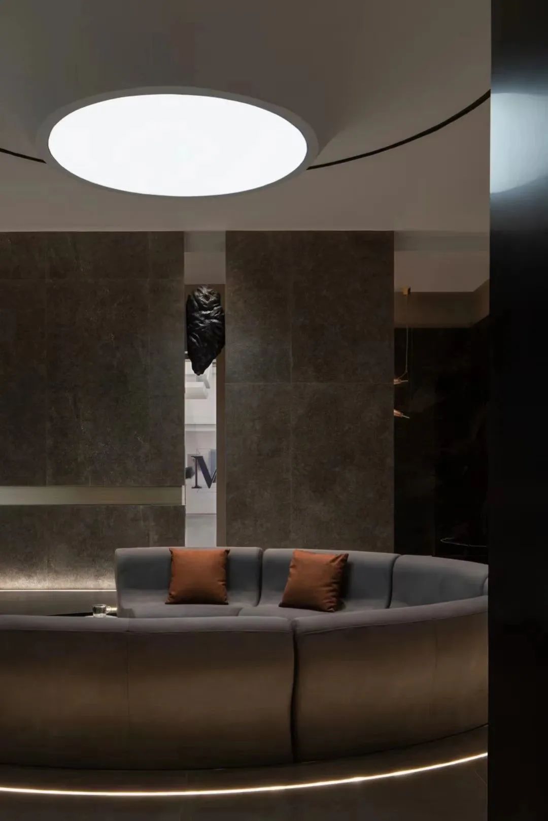 穿过走廊,“令人瞬间安静的高级灰”营造人与材质对话的氛围,不同出口解锁不同的体验环境。
