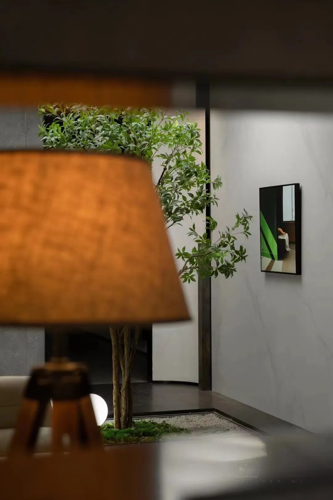 从灯饰的选择到小客厅的绿植景观,温和宁静,一字型琴键沙发,轻松舒适,以简约的装饰烘托恬静宜居氛围,更以大面积的简约铺贴呈现产品工艺细节。
