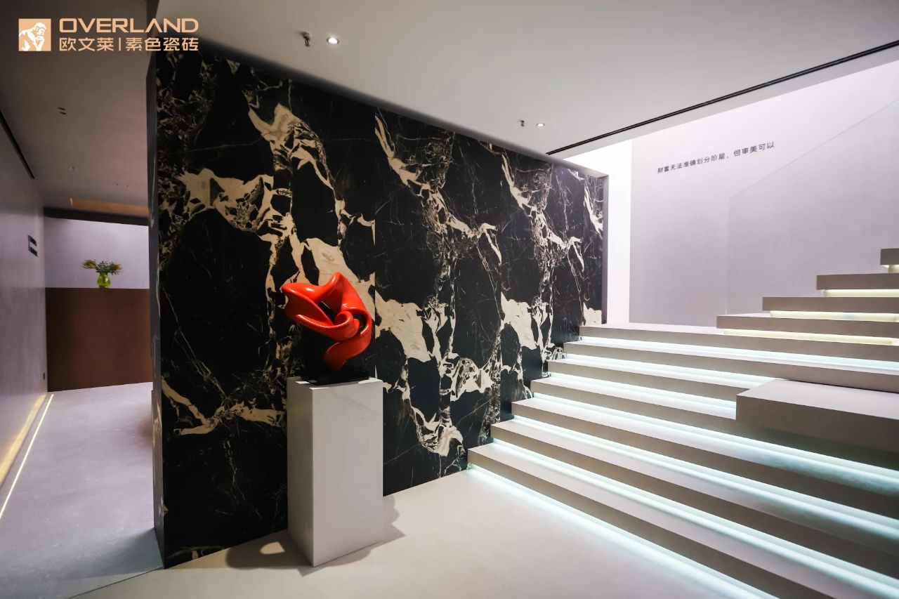 3000㎡的展示面积,将欧文莱历年符号产品融入到各个空间作精准呈现。不是简单的瓷砖模拟间应用展示,也不是平铺直叙的瓷砖素材展示,而是欧文莱对现代家居素色美学理念的理解,通过瓷砖材质呈现人文思想空间。