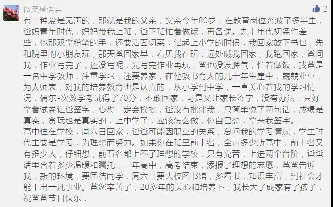 端午节没能团圆,不过还好有网络联系,彼此之间能够通过视频电话,互相送去温暖。昨天和他通话听说最近工作挺累的,又是做社区核酸,又是接种疫苗,听的我很心疼,端午节我和妈妈提前包了他最爱的粽子用顺丰给他寄了一些过去。父亲节又快到了,也不知送他什么礼物好,只希望他能平平安安顺利完成工作就好。最后借欧文莱这个平台祝愿所有父亲节日快乐,生活高高兴兴的,出入平平安安的,也和辛苦付出的老爸说:辛苦了,我和妈妈爱你,等你早日平安归来。