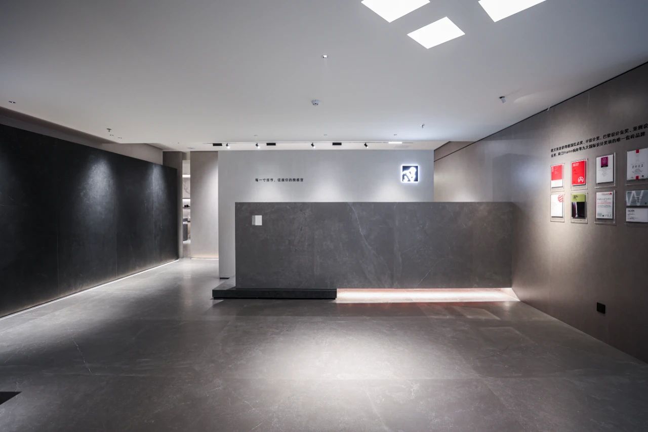 另外,苏州也是瓷砖行业内卷特别严重的城市。整个3000㎡欧文莱体验店空间是从品牌调性塑造开始,中间是产品选择,再到真实的体验,最后是情感上的沟通链接,能让客户有一个沉浸式的体验,是一个完整的闭环。全岩板打造,以一个对消费者有吸引力的店面形象,让欧文莱品牌能被快速识别、记忆;大店的虹吸效应,产生了更多主动合作的设计师。