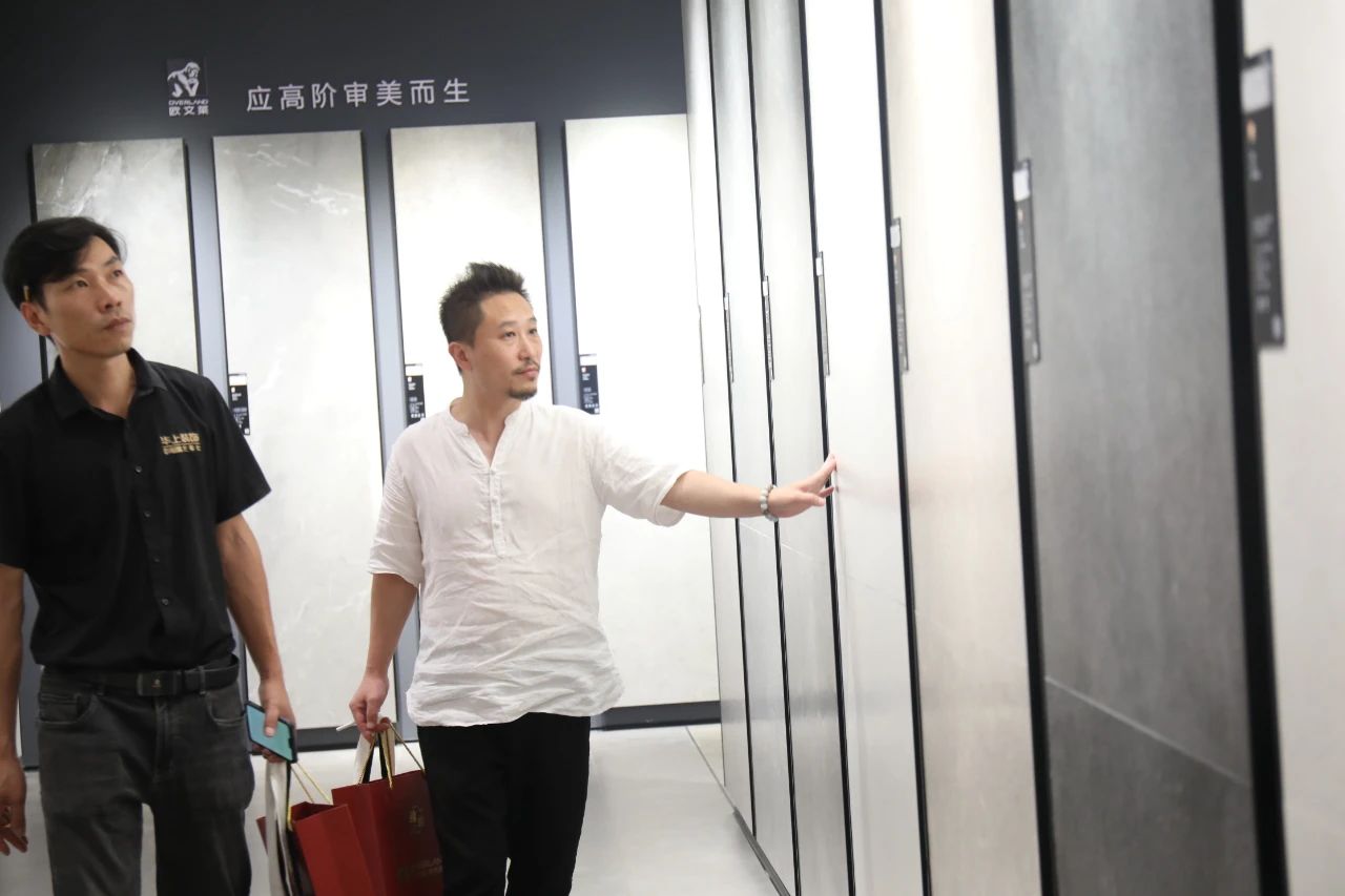 ▽ 设计师们近距离体验欧文莱素色瓷砖