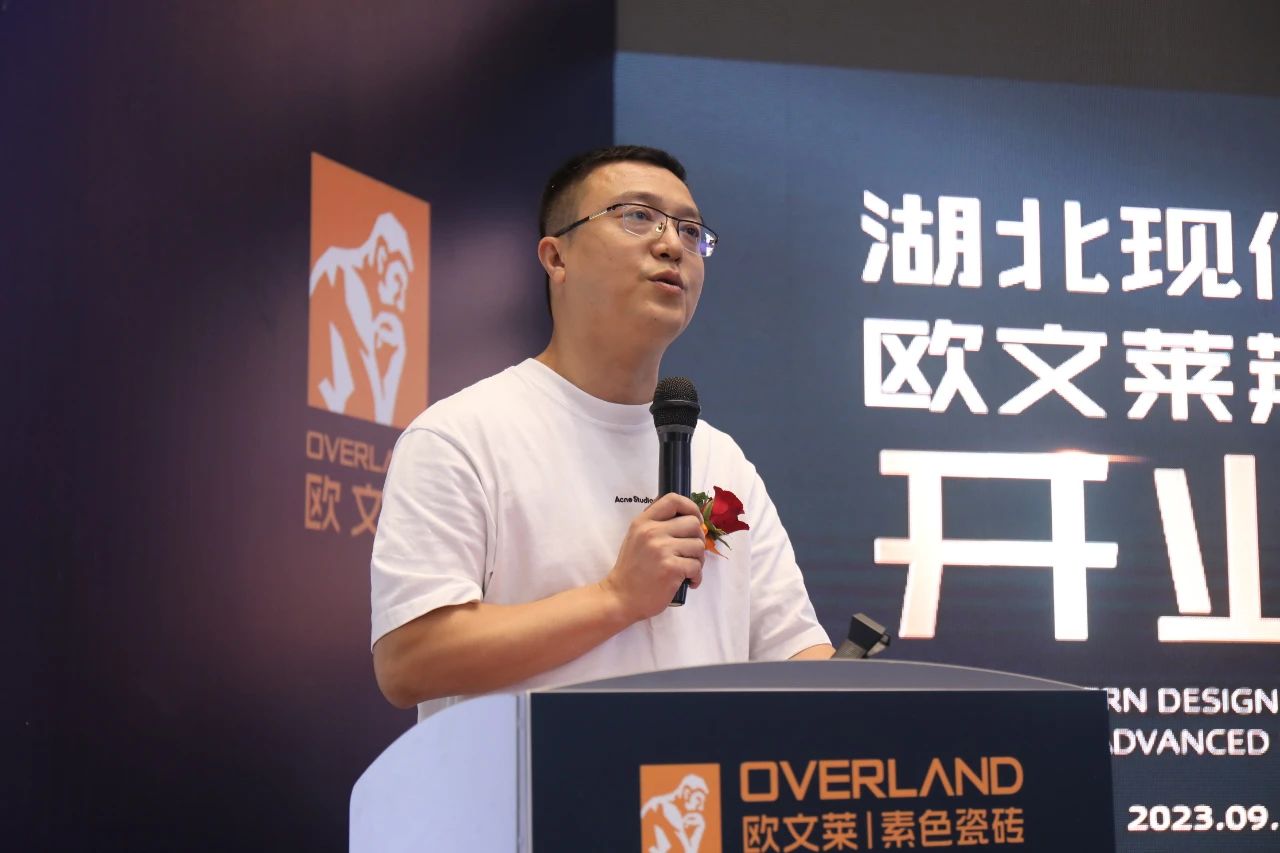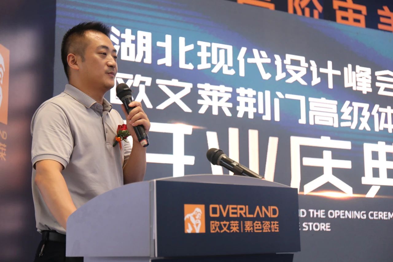 作为活动主办方,广东欧文莱陶瓷有限公司加盟商中心总经理刘颖对欧文莱荆门高级体验店开业表示诚挚的祝贺,对各界朋友的出席、关注与支持致以真诚的感谢。他表示:“响应高质量发展的时代号召,欧文莱把握趋势时机窗口,构建高质量体验门店的竞争优势。希望通过欧文莱DCT门店新基建战略部署,欧文莱荆门高级体验店能为荆门陶瓷事业的繁荣注入新的活力,赋能荆门美好人居,带来划时代的素色美学体验。”