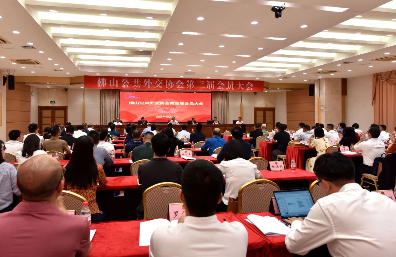 10月25日,佛山公共外交协会召开第三届会员大会。广东公共外交协会常务副会长傅朗,市政协主席李政华,市委常委、统战部部长丁锡丰,市政协副主席郑灿儒以及市、区涉外单位代表和会员约120人出席大会。
