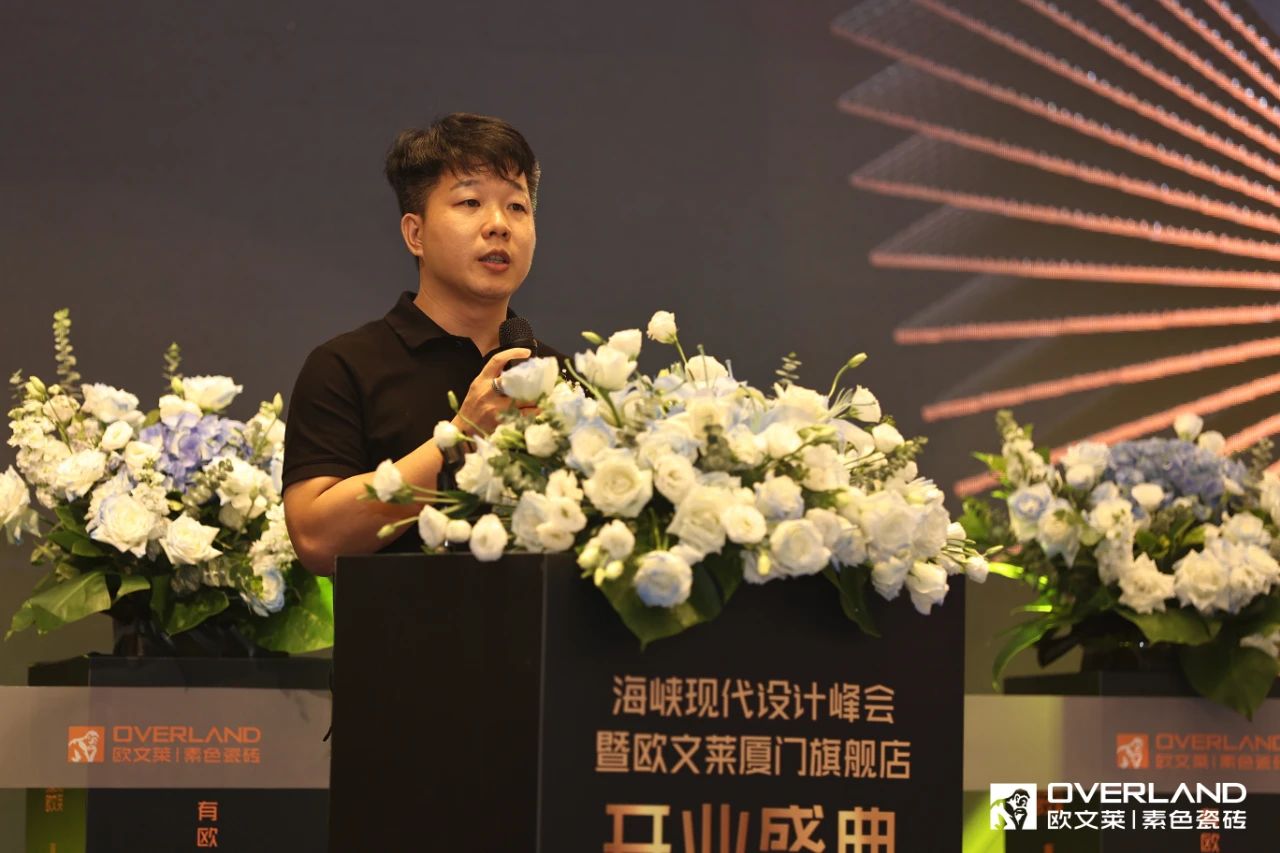 活动伊始,广东欧文莱陶瓷有限公司执行总裁汪加武对欧文莱厦门旗舰店的盛大开业表示诚挚的祝贺,对其未来发展致以支持与鼓励。他在阐述门店新基建意义的同时,表示:“立足世界之林,欧文莱致力构建中国与国际设计的桥梁。希望能为更多充满创意和朝气的设计师提供交流和选材的平台,为海峡设计圈带来城市空间发展的多种可能性,带来人与设计空间的更多思考。”