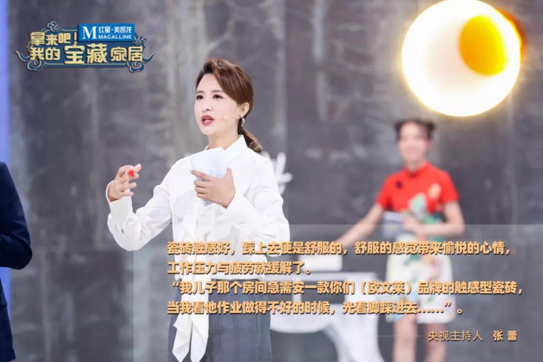 主持人张蕾当即表示:“我想我儿子那个房间急需安一款你们(欧文莱)品牌的触感型瓷砖,当我看他作业做得不好的时候,光着脚踩进去……”舒缓压力,需要一款欧文莱的触感型瓷砖。