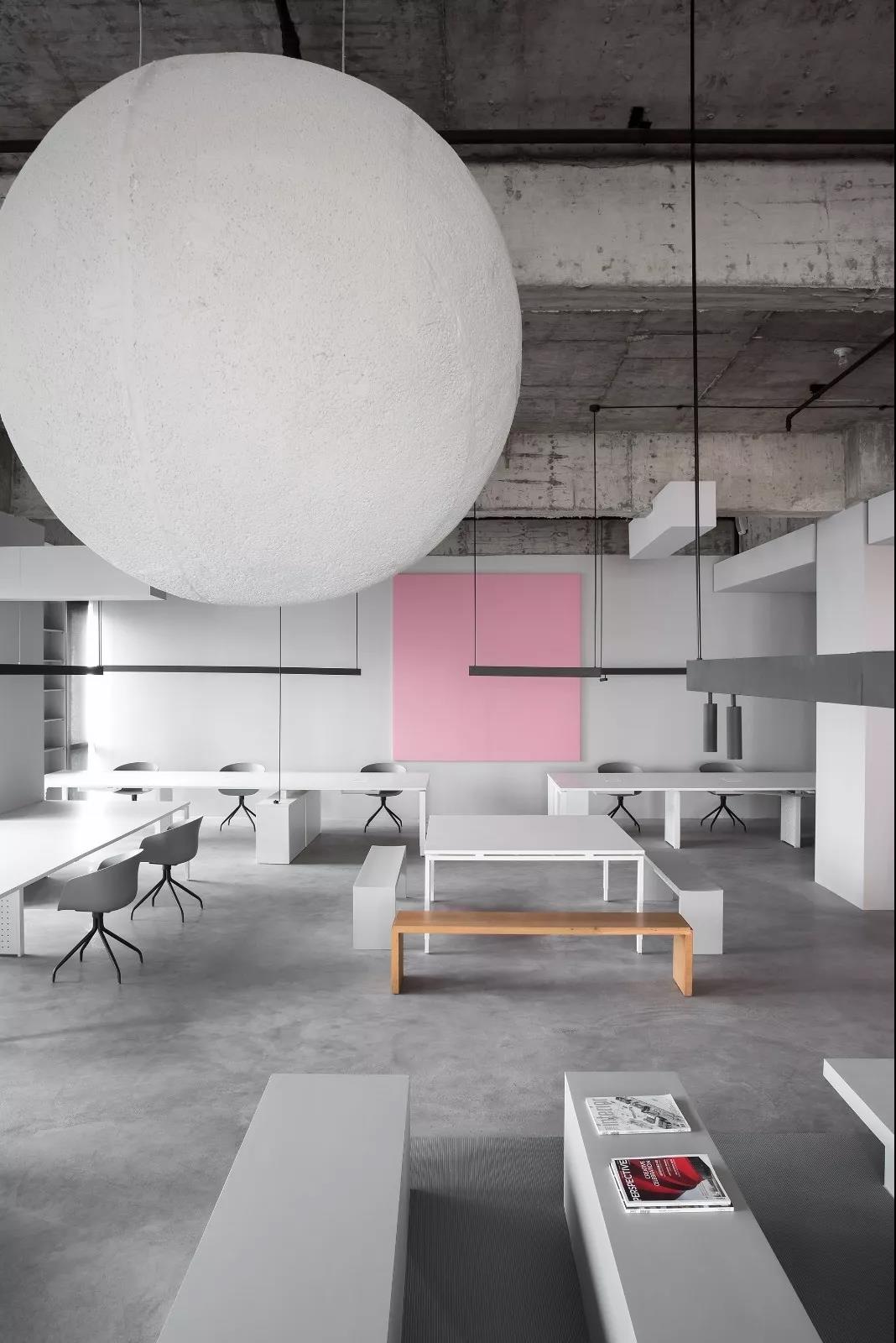 设计师在空间中强调方与圆的对比和冲突、极致的材料与形态的构成、克制的色彩与抽象的理念,创造性地表达出一个未知游戏。