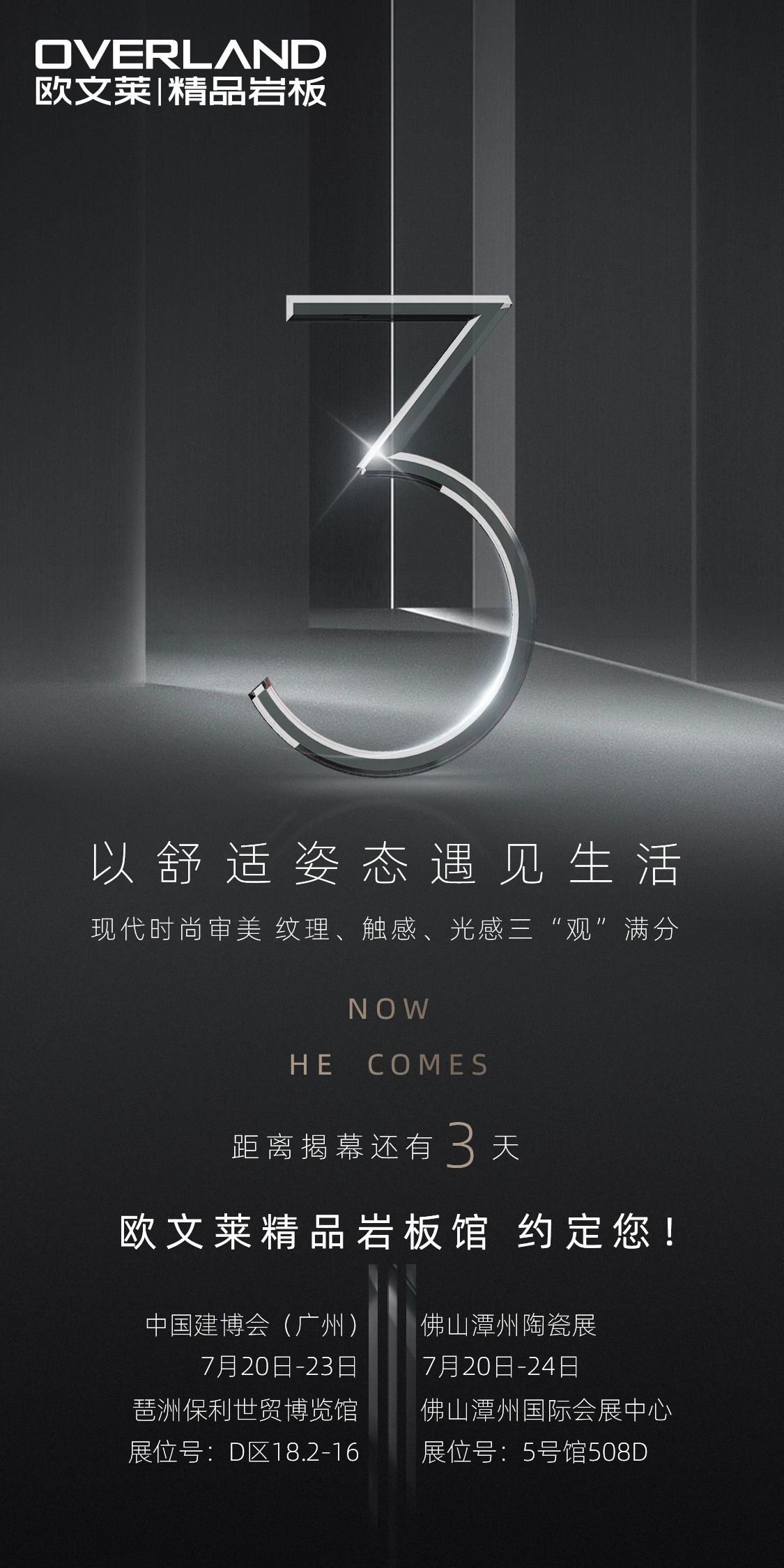#欧文莱精品岩板 以舒适姿态遇见生活 现代时尚审美 纹理、触感、光感三“观”满分 距离揭幕还有 3 天 欧文莱精品岩板馆 约定你!